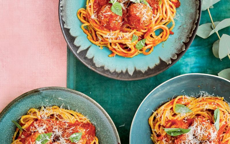 Naj bodo špageti tokrat z mesnimi kroglicami v paradižnikovi omaki, popestrimo pa jih s svežo baziliko.