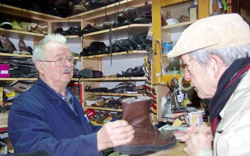 Pod Kapitljem na Prešernovem trgu v Novem mestu že 35. leto deluje 80-letni čevljar Henrik Kolenc, ki se še vedno ure in ure sklanja nad uničenimi čevlji.