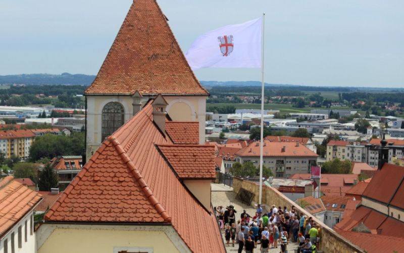 Mestni občini (MO) Ptuj je pod vodstvom županje Nuške Gajšek na ptujskem gradu uspelo postaviti drog z zastavo. Pobudo za to je bilo na Ptuju slišati že več let, a kulturno-varstvena stroka na območju gradu postavitve zastave ni dovolila.