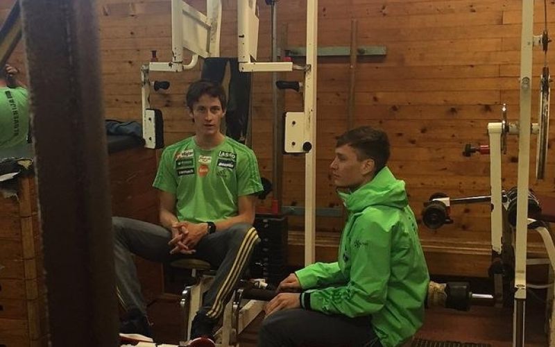 Člani slovenske A-reprezentance v smučarskih skokih so dopoldne v Kranju opravili prve treninge, popoldne še trening akrobatike v Ljubljani, v poznem popoldnevu pa sta se dva člana, Peter Prevc in Robert Kranjec, v Podbrezjah pridružila nekaterim legendam slovenskega skakanja na družabnem dogodku.