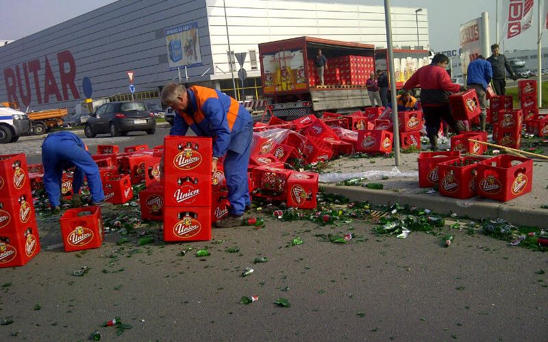 Tržaško cesto v Mariboru preplavili razsuti zaboji piva