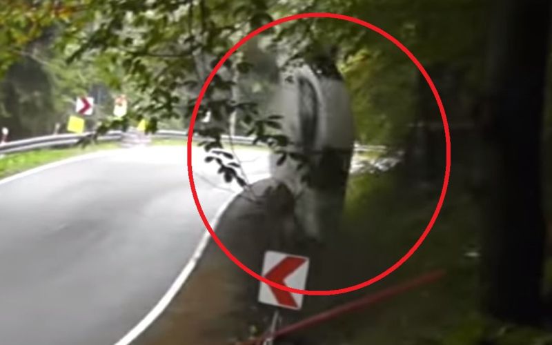 Videoposnetek trčenja je nastal na poljskem reliju GSMP Magura Małastowska 2014. Voznik belega mitsubishi lancerja EVO X je v levem ovinku izgubil nadzor nad vozilom, zaradi česar je zdrsnil s ceste. Pri tem pa je zadek vozila zaneslo v obcestni jarek. Zaradi silovitega trčenja je vozilo dobesedno katapultiralo v zrak, v nesreči pa nihče ni bil huje ranjen. Ni kaj, sreča v nesreči.