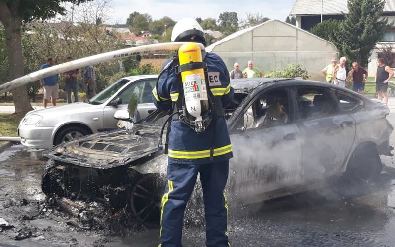 FOTO: Po trku v betonsko ograjo in smreko ga niso uspeli rešiti