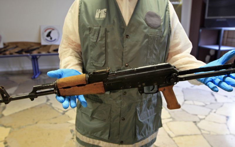 Med kontrolo avtobusa, ki je 14. februarja dopoldne iz Hrvaške pripeljal na mednarodni mejni prehod v Metliki, so policisti našli kovček, v katerem so bile tri avtomatske puške tipa Kalašnikov in 77 nabojev.
