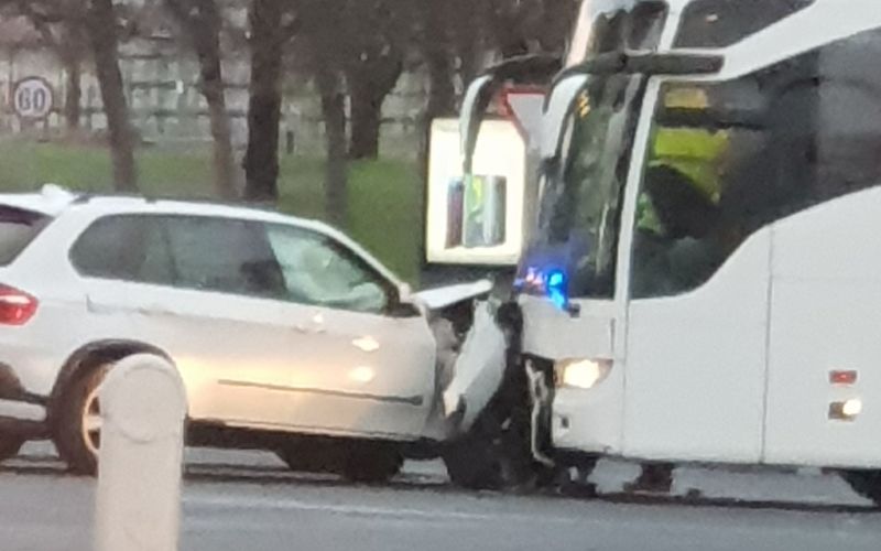 Nekaj minut po 7. uri sta v centru Ljubljane trčila voznik primestnega avtobusa in voznik osebnega avtomobila.