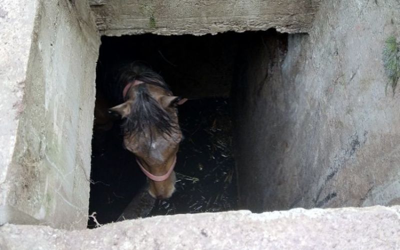 FOTO: Konj je čofnil v smrdečo jamo