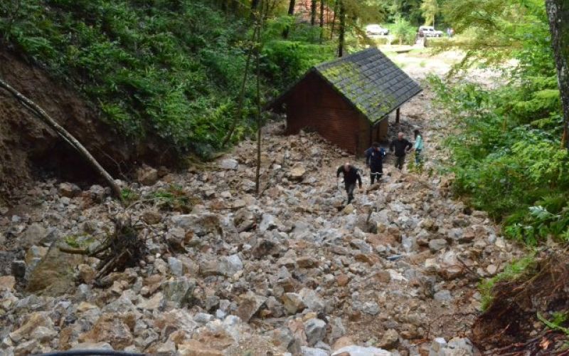 Pogled na opustošenje pri Kostanjeviški jami prikaže pravo sliko moči, ki so jo v noči na soboto imeli hudourniki. Turistov v jamo še lep čas ne bo.