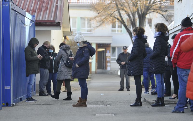 (FOTO) Brez gneče v cepilnem centru. Medtem pa kolona ljudi pred zabojnikom za hitre teste