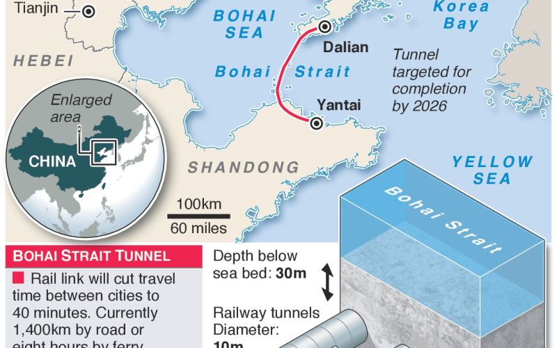 Predlogi o izgradnji tunela pod morjem Bohai, ki naj bi stal več kot 36 milijard ameriških dolarjev, bodo kitajski vladi predstavljeni v začetku aprila. Tunel naj bi v dolžino meril 123 kilometrov in s tem prekašal oba do sedaj najdaljša tunela na svetu – japonski Seikan tunel in tunel Channel, ki povezuje Francijo in Veliko Britanijo.