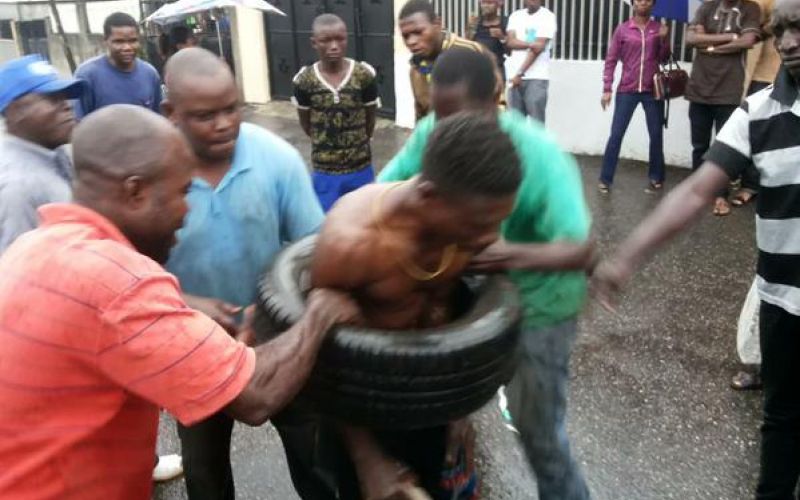 V nigerijskem Lagosu se je množica znesla nad domnevnim avtomobilskim tatom.