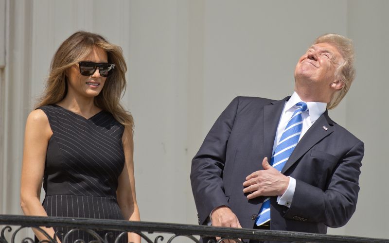 FOTO: Donald Trump sončev mrk opazoval kar brez zaščitnih očal, dokler ...