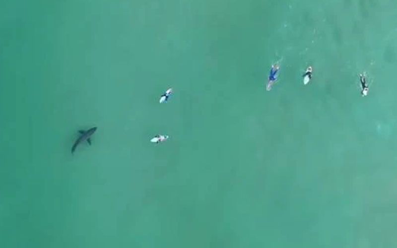 VIDEO: Dramatični posnetki belega morskega volka, ki se je potihoma prikradel do deskarjev