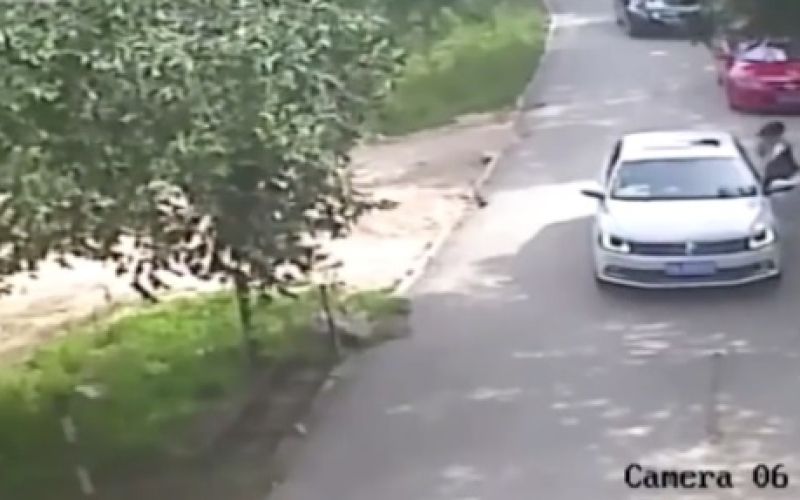 FOTO: Z avtom zapeljal v napadalca z mačeto in ga ustavil