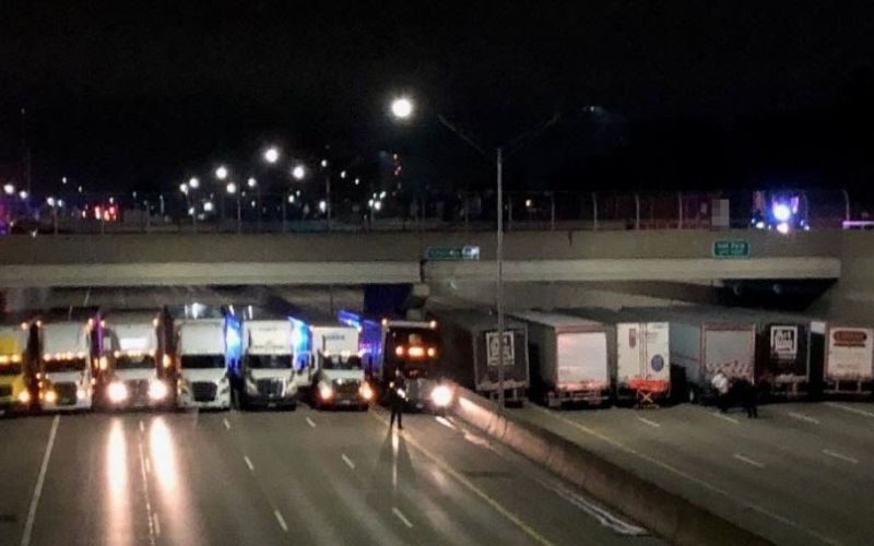 Trinajst tovornjakarjev je svoja vozila parkiralo pod nadvozom, iz katerega je želel skočiti samomorilski moški.