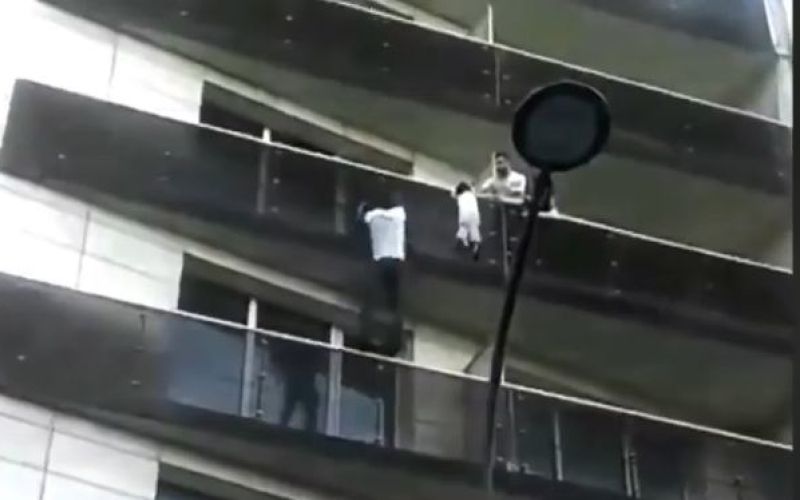 VIDEO: Mož-pajek z balkona rešil 4-letnika