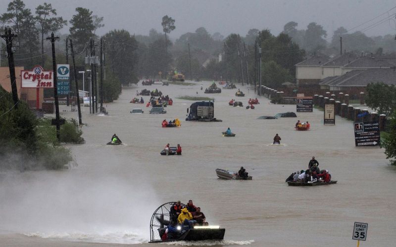Ekipe reševalcev v čolnih in helikopterjih v Houstonu so na robu zmogljivosti. Od narasle vode ogrožene prebivalce spravljajo na varno. Ker ne morejo rešiti vseh naenkrat, je nekaj tistih, ki so morali počakati na pomoč celo streljalo proti reševalcem.