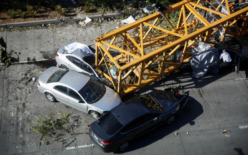 VIDEO: Žerjav pod sabo pokopal avtomobile, umrli štirje ljudje
