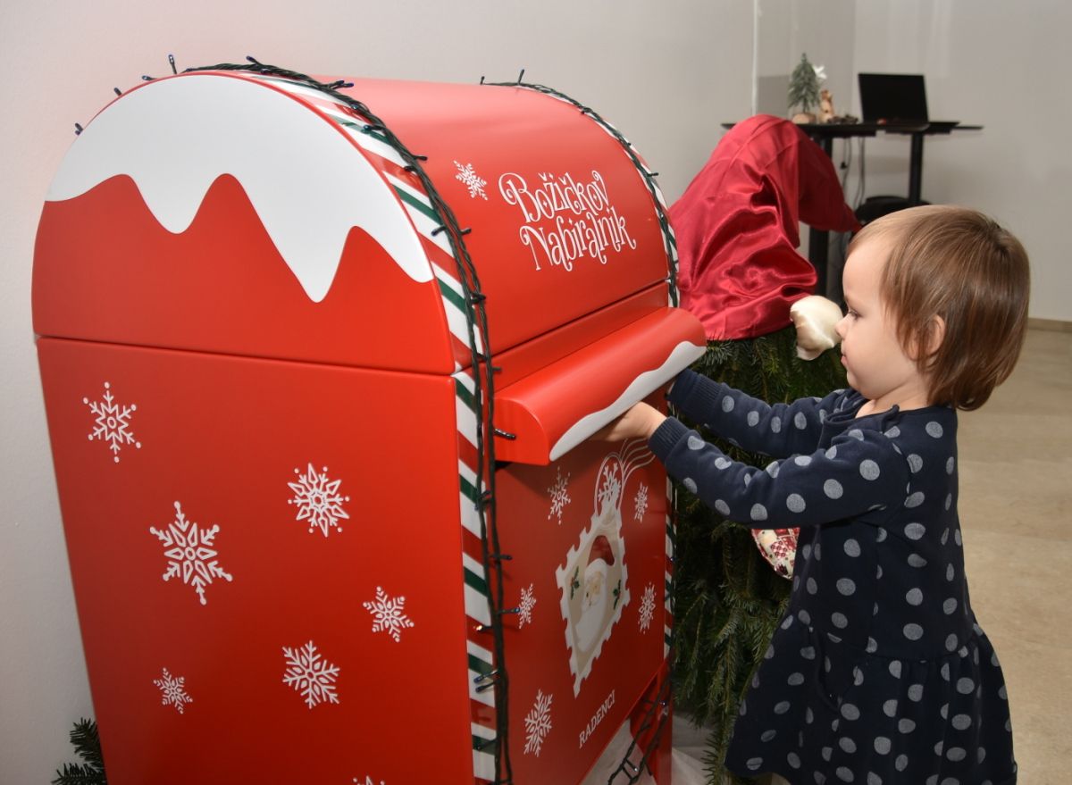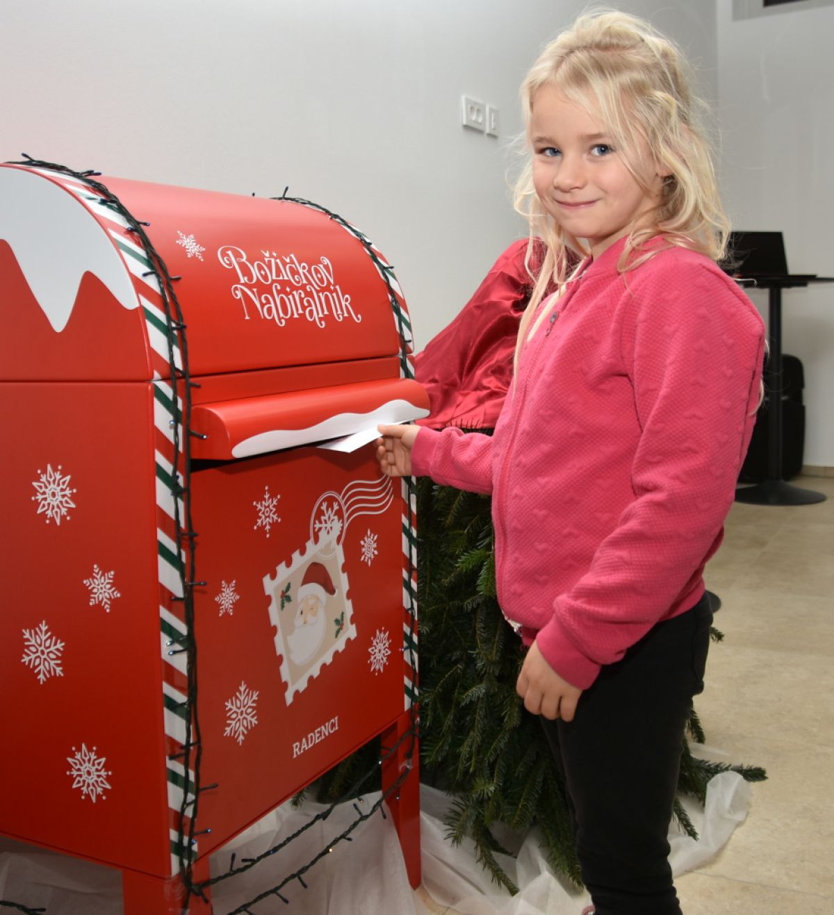 Občina Radenci je ena od tridesetih občin v Sloveniji, kjer je v novem ogrevanem prostoru v parku v Radencih blizu avditorija postavljen pravi Božičkov nabiralnik s Severnega pola, kjer lahko otroci vsak dan med 16. in 20. uro vse do 17. decembra pišejo pisma Božiček, lahko pa pismo napišejo že doma in ga samo oddajo v nabiralnik. Za najmlajše je Občina skupaj s Turističnim društvom Radenci pripravila sladki kotiček in Božičkovo pisarno. Poskrbljeno je tudi za starše oz. spremljevalce otrok, ki v času, ko otrok piše pisemce, lahko popijejo kavo, kuhano vino … brezplačno. Ob Božičkovem nabiralniku je letak s QR-kodo, ki jo je potrebno preslikati in slediti navodilom, da bi prejeli uradno potrdilo in ob prijavi Božičkovo darilo. Foto Dani Mauko