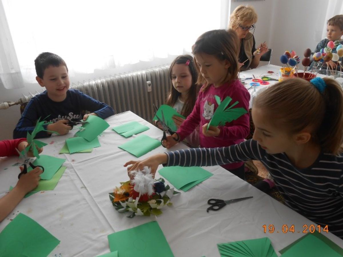 Včeraj so otroci v prostorih Društva prijateljev mladine Črnomelj ustvarjali na temo Velikonočna delavnica in pirhi. Plastična jajčka smo namazali z lepilom in jih posuli z začimbami, kremenčkovim peskom, rižem ... ali pa smo jih poslikali s tempera barvami. Naredili smo si tudi košarico, v katero smo nato dali naša jajčka, plišaste zajčke ali piščančke, čokoladna jajčka in voščilo.