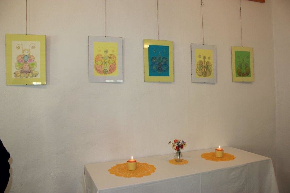 Tokrat je razstavo naslovila Jaz sem metulj. Razstavljene so slike stiliziranih metuljev. Prisrčni akvarele obkrožajo kvačkane rožice in prtički. Vzdušje je slovesno in igrivo, kot se spodobi za razstavo naslikanih metuljev.