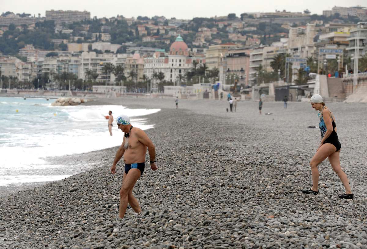 Na Azurni obali je bilo mogoče spremljati nenavaden prizor, ki je bržkone privzdignil obrv kakšnega pripadnika drugo najbolj priljubljene vere v državi. Večina kopalcev, ki so se namakali v Sredozemskem morju, je namreč nosila obrazne maske. Dovoljeno je sicer tudi namakanje trnkov in deskanje, ni pa še dovoljeno leže loviti sončnih žarkov. »Delno smo svobodni,« je dejal eden od natakarjev na razmeroma prazni plaži v Nici. Življenje je zaživelo tudi v parku Bois de Boulogne v Parizu, kjer so zdravstveni delavci naokoli delili sredstva za razkuževanje in maske.