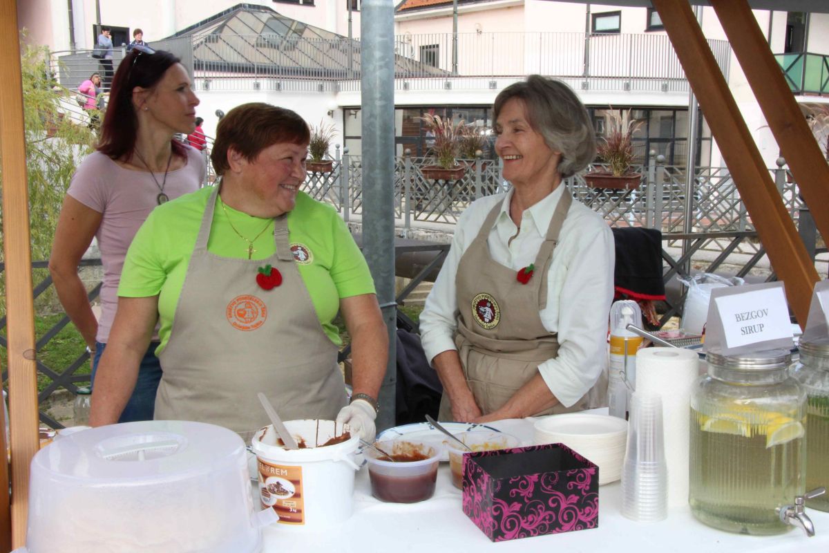 Seveda so na pestrem včerajšnjem dogajanju članice domačega društva podeželskih žena, ki ga vodi Sabina Vrtar, prikazale, kako se naredi jabolčni zavitek, in pa nov sladki spominek Občine Dolenjske Toplice – Topliški piškotek, ki je nastal v sklopu projekta Sitarjeva hiša – na izvirih tradicije. Je unikaten po izgledu, moč ga je dobiti v treh okusih, vse sestavine zanj pa so lokalne, tako da lahko obiskovalci Dolenjskih Toplic dejansko domov vzamejo košček topliške doline. Včeraj so jih med obiskovalce razdelili kar lepo število.