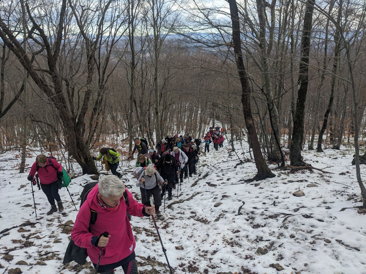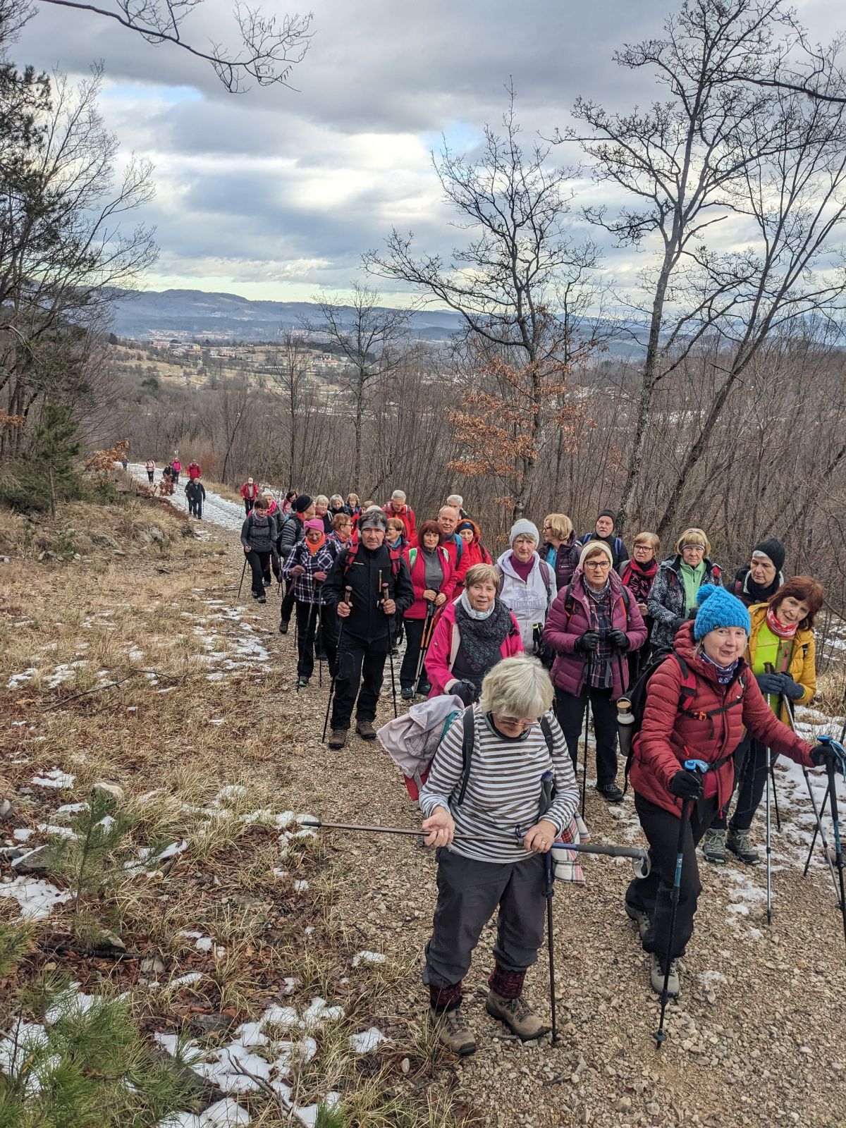 Starejša skupina pohodnikov posavskih planinskih društev je v četrtek, 25. 1. 2024, organizirala planinski izlet na Slavnik. S polnim avtobusom pohodnikov smo se zbrali v meglenem Posavju, iz katerega smo se odpeljali mimo Ljubljane do Kozine, kjer smo v gostinskem lokalu imeli malico in se osvežili s čajem ali kavo. Nadaljevali smo po zanimivi pokrajini skozi Materijo in Markovščino, kjer smo zavili na stransko cesto po kateri smo se odpeljali na izhodišče Skadanščino. Od tu smo začeli z vzponom po lepo urejeni in označeni poti, na kateri je bilo še nekaj snega, ki pa na našo srečo ni bil pomrznjen.