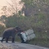 V rezervatu za divje živali vzhodno od Bangkoka na Tajskem se je v soboto zvečer nad tovornjakom znesel eden od tamkajšnjih slonov – tamkajšnji mediji domnevajo, da je lačni velikan presodil, da bi v vozilu lahko bila zanj primerna hrana.