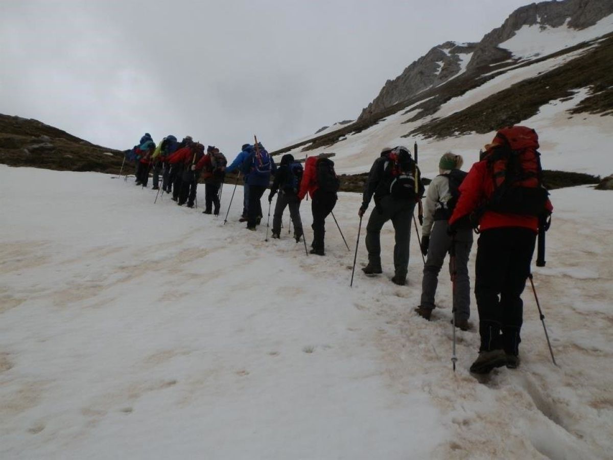 Po celonočni vožnji smo se pripeljali v Banjsko in s težavo našli odprt lokal za jutranjo kavico. Avtobus nas je peljal do izhodišča – parkirišča pod smučišči. Počasi smo se povzpeli ob hudourniku do koče, se okrepčali in pripravili na vzpon. Pot se ves čas serpentinasto vije med ruševjem in ob hudourniku. Na višini 2300m smo iz kamnov sestavili obeležje, na mestu, kjer je umrl Peter Luzar, in se poklonili njegovemu spominu. Vzpon proti vrhu je potekal po snežiščih in je bil zelo strm. Močan veter je še oteževal vzpon. Na vrhu smo bili le kratek čas, ker je zelo pihalo. Razgled je bil prostran in je bil nagrada za vložen trud. Pri sestopu smo bili zelo previdni, da smo preprečili zdrs po strmem snežišču.