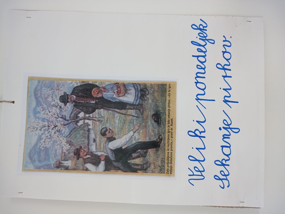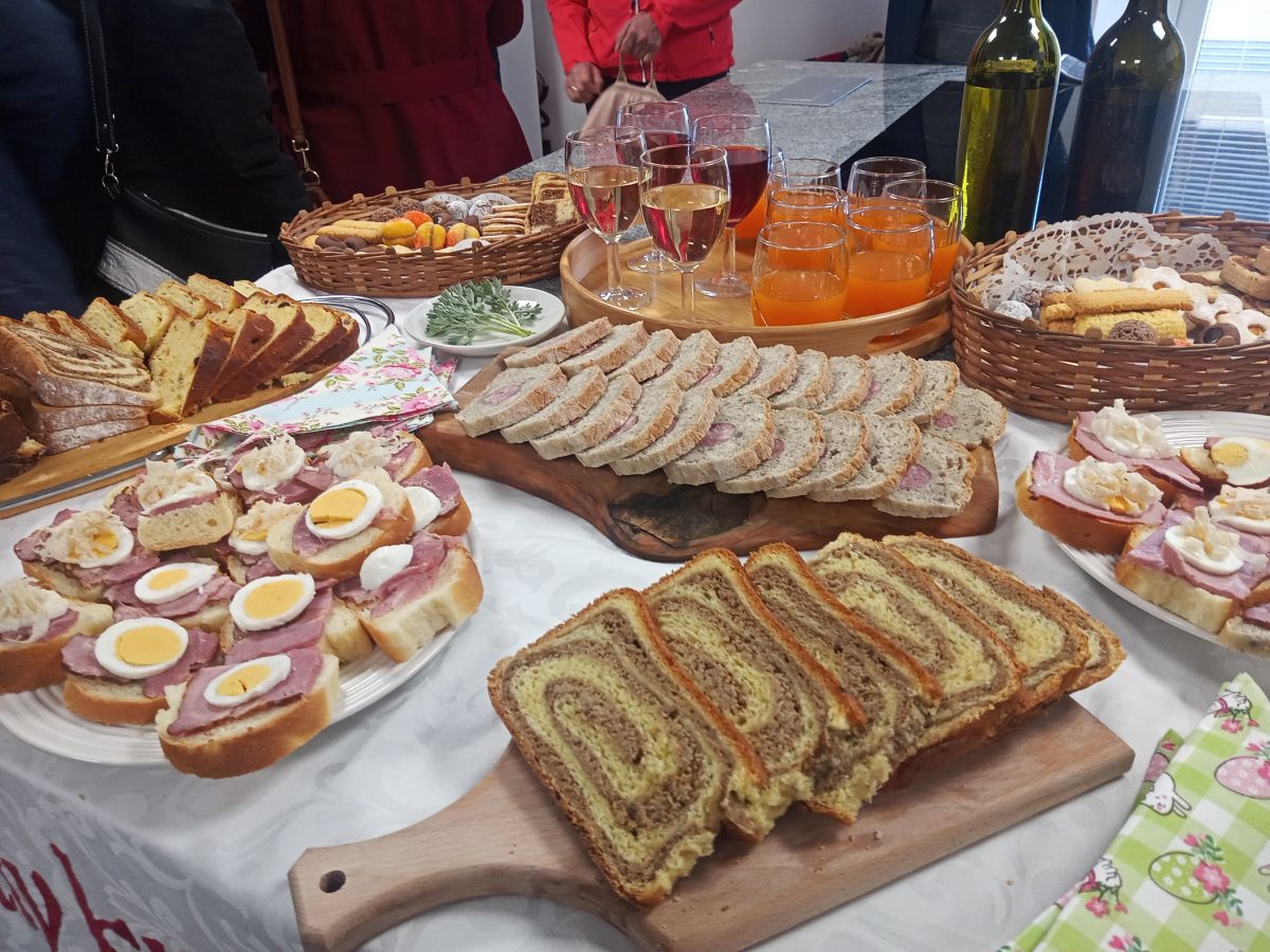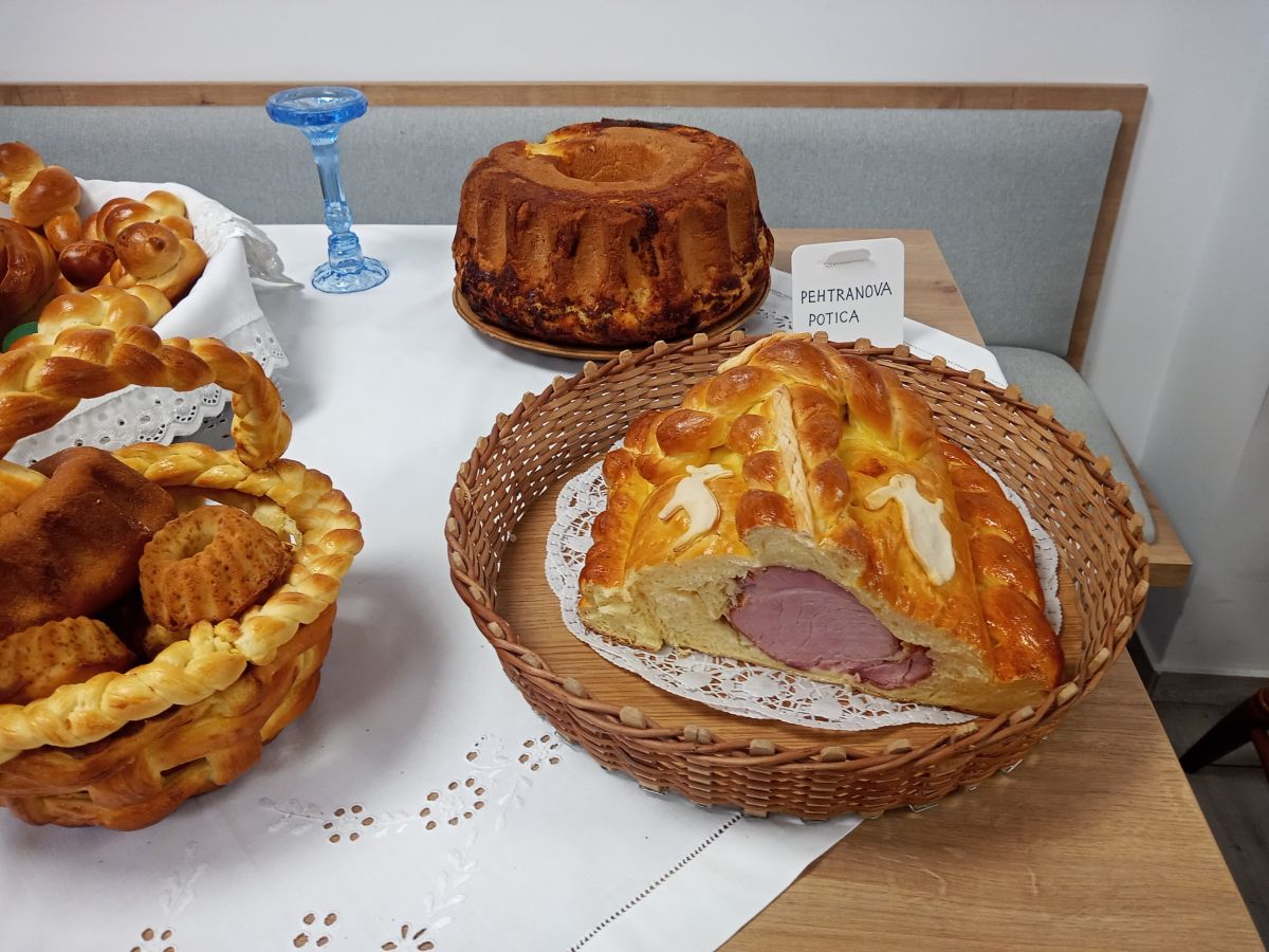 Razstavljene so bile tradicionalne velikonočne jedi, kot so krača, potice, kruh, šarkelj, pletenice s pirhi, kristusova krona, šunka v testu, hren, pelin in še mnogo drugih. Jerbas je bil napolnjen z najboljšimi dobrotami, pripravljen za k žegnu. Predstavljeni so bili tudi predmeti, ki ponazarjajo ta največji krščanski praznik. Niso manjkale niti butare. Slike na steni so opisovale in predstavljale njihov pomen. Obiskovalci so si lahko ogledali sveža jajca različnih vrst - kokošja, purja, račja ali prepeličja.