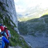Bolj ko smo se dvigali, zahtevnejše so bile razmere. Skala je bila vlažna in na več mestih spolzka, kot da je poledenela. Prav so nam prišle rokavice. Skrbno smo pazili, da nismo krušili kamenja, saj je to zelo nevarno za vse planince pod nami.