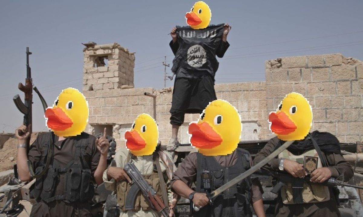 Tokrat se je tam zgodila invazija znamenitih gumijastih račk - v podobi pripadnikov ISIS. Photoshop je pač opravil svoje, domišljija tistih, ki jim gre ISIS na živce, pa tudi. Nekatere predelave so zelo smešne. Gaga!