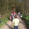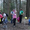 Ker je bil torej to izlet v neznano, so nas po poti usmerjale puščice in baloni. Seveda je bil vmes tudi čas za počitek in okrepčitev. Od našega postanka pa do konca poti, do znaka stop, je bilo le še nekaj minutk. Tam pa sva vzgojiteljici pripravili čutno pot. Otroci in nekateri pogumni starši so si dali čez oči prevezo in ob vrvi spoznavali različne predmete iz narave, ki sva jih privezali nanjo.