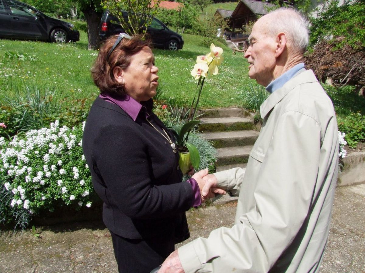 Ožje družinsko praznovanje je bilo v soboto, 19. aprila, na predvečer rojstnega dne so mu prišli zapeti podoknico fantje s Kompolja in Boštanja, v torek, 22.4., pa je slavljenca obiskal tudi župan občine Sevnica g. Srečko Ocvirk, predsednik Krajevne skupnosti Boštanj g. Jože Udovč, boštanjski župnik g. Dr. Alfonz Žibret in predsednica občinske organizacije rdečega križa Sevnica ga. Breda Sotošek. Vsi so mu zaželeli čim več zdravja in da se snidejo ob dopolnjenem stotem letu.