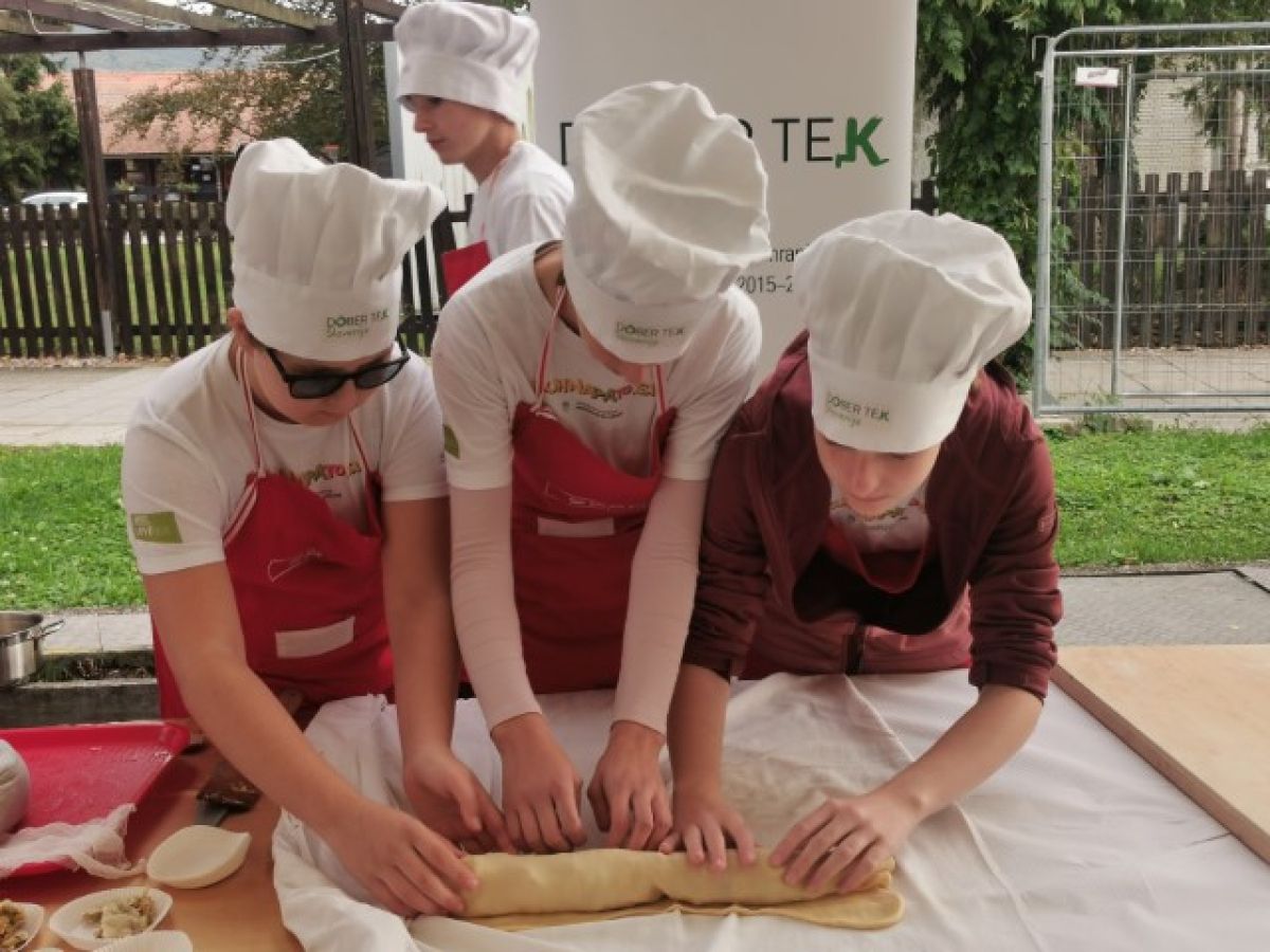Učenci OŠ Drska smo pripravili ajdove štruklje s sirom in štruklje s cvrtjem in porom. Svoje kuharske in govorne veščine smo predstavili številnim tujcem na mednarodni konferenci.