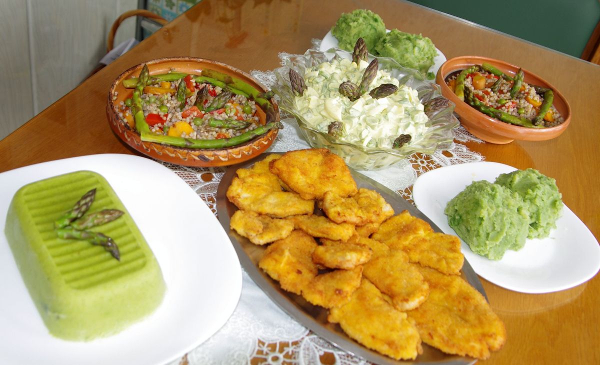Danijela šparglje obožuje, pozna nešteto receptov z njimi, saj se jih pripravlja v juhah, s testeninami, v rižotah, omletah in pitah… A za naše bralce je izbrala pito s šparglji, špargljevo solato in špargljev sladoled. Anica pa je – da bo na mizi res čisto pravo kosilo - pripravila še pire krompir s koprivami, solato z ajdovo kašo ter ocvrte medaljončke iz domačega piščanca.