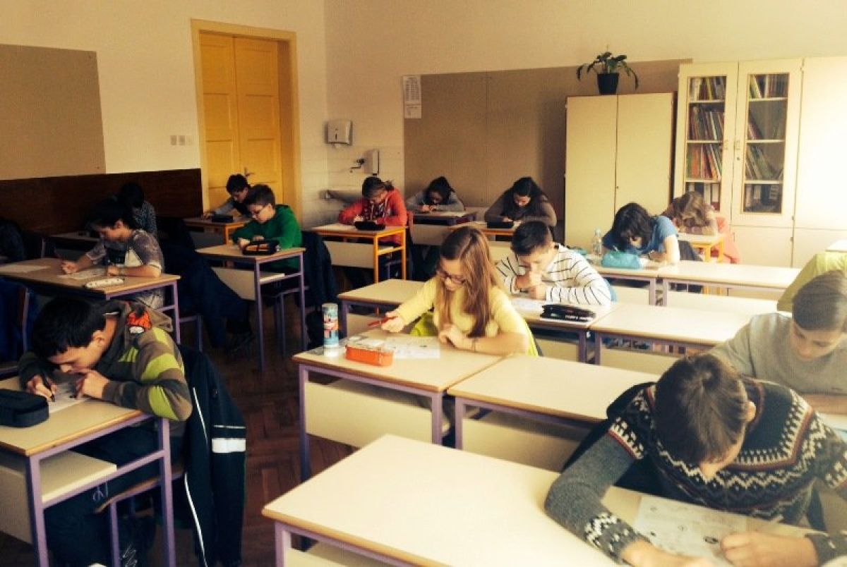 Učence razredne stopnje so do učilnic večinoma pospremili starši, z njimi so lahko ostali do prihoda nadzornega učitelja. Za reševanje nalog smo imeli 45 minut časa. V mislih smo premetavali kocke, četverce in sestavljali zelo komplicirana geometrijska telesa. Test se mi je zdel dokaj zahteven. Največ truda smo porabili pri razrezu kocke, kjer so se prvič pojavila črna polja tudi ob robu kocke.