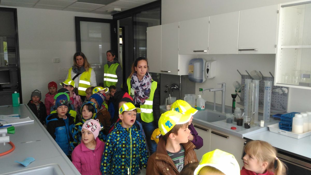 V četrtek, 20. 4. 2017, smo v Petrovem vrtcu izpeljali 1. naravoslovni dan. Avtobus nas je po zajtrku najprej odpeljal na Komunalo Novo mesto, kjer smo si ogledali reciklažni center. Gospod Simon nam je povedal, kaj naredijo z vsemi smetmi, ki jih tovornjaki pripeljejo k njim in kaj se v nadaljevanju dogaja z odpadki – steklom, embalažo in papirjem. Nato smo našo pot nadaljevali vse do čistilne naprave pri tovarni Krka, kjer nam je gospa Bernarda s pomočjo slike in besede predstavila njihovo delo in vlogo čistilne naprave. Sledil je ogled čisto pravega laboratorija, kjer smo lahko videli instrumente za raziskovanje. S pomočjo velikih čaš nam je gospa še nazorno pokazala, kakšna voda priteče v čistilno napravo, kaj se zgodi z njo, ko nalogo prevzamejo bakterije in kakšno vodo spustijo iz čistilne naprave v reko Krko.