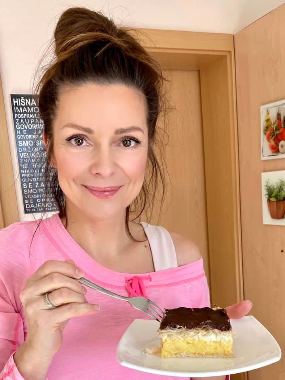 "Na koncu kremšnite razreži na kocke in posuj s sladkorjem v prahu ali premaži s čokoladnim prelivom (jedilno čokolado na rahli temperaturi stopim z nekaj sladke smetane). Pa dober tek," je vse skupaj svojim sledilcem in oboževalcem zaupala sladkosneda Natalija Verboten.