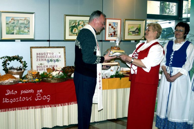 Topliško društvo podeželskih žena je v soboto, 15. marca, že petič zapored pripravilo razstavo velikonočnih dobrot. Ozadja treh omizij v vhodni avli kulturno-kongresnega centra marljivim ženam tokrat ni bilo treba okrasiti s svojimi vezeninami in drugimi ročnimi deli, kot naročeno so bile za to zelo bogata dopolnitev slike v petek odprte razstave del Rezke Arnuš.