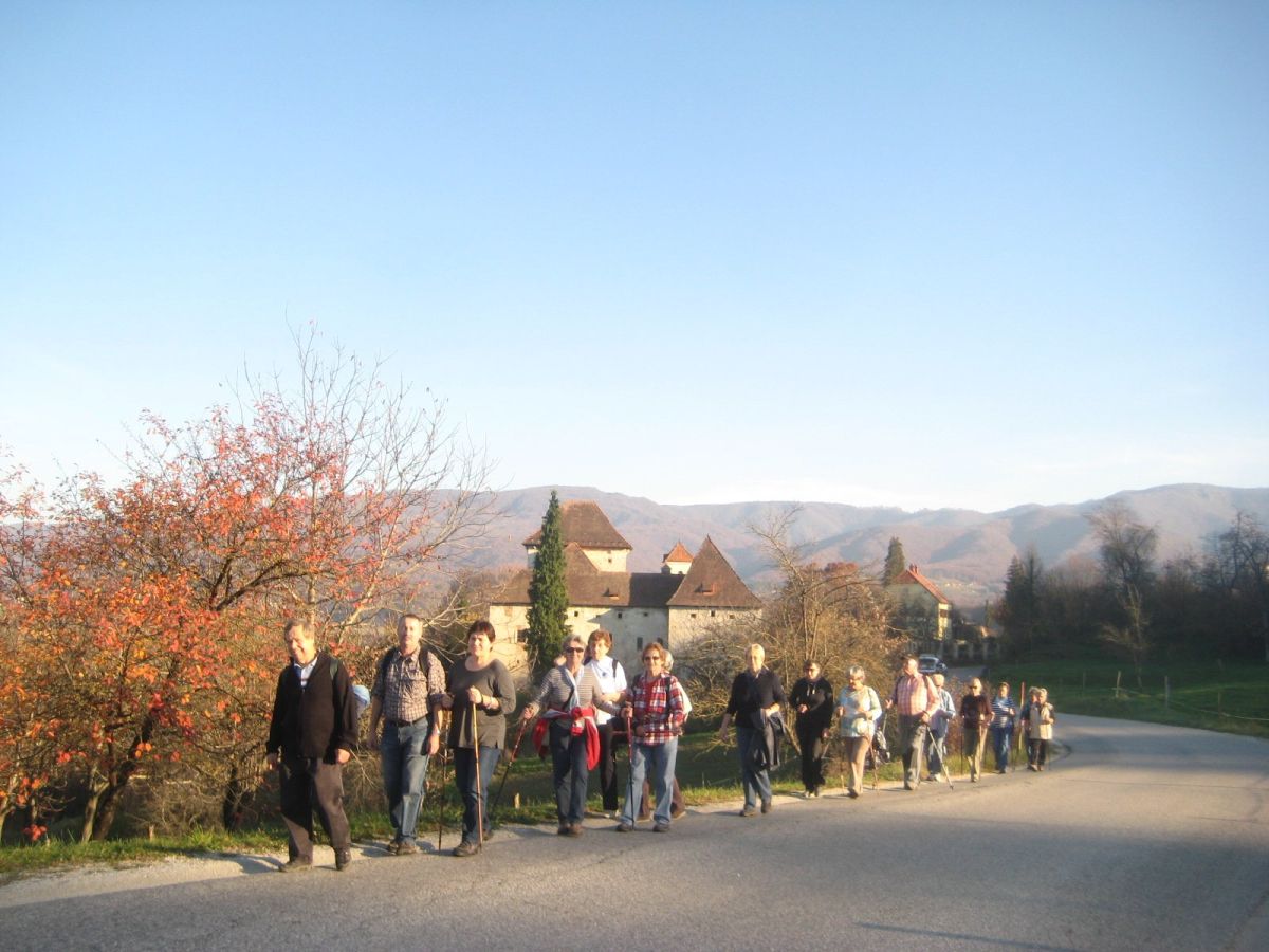 S tega osončenega hriba smo se spustili do gradu Gracarjev Turn mimo jesensko obarvanih vinogradov in dreves. Po gozdnih poteh nam je šelestelo listje v ritmu naših korakov. Spotoma smo bili deležni še povabil od prijaznih domačinov, da smo poizkusili kako se je ponoči spremenil njihov mošt v vino, saj je bila ta sreda ravno na god Sv. Martina. Zadovoljstvo je bilo še večje, ker nas je bilo na ten pohodu več kot po navadi, kar 17 in še podatek od vodnice Fanike, da smo na dvesto osemdesetem pohodu.