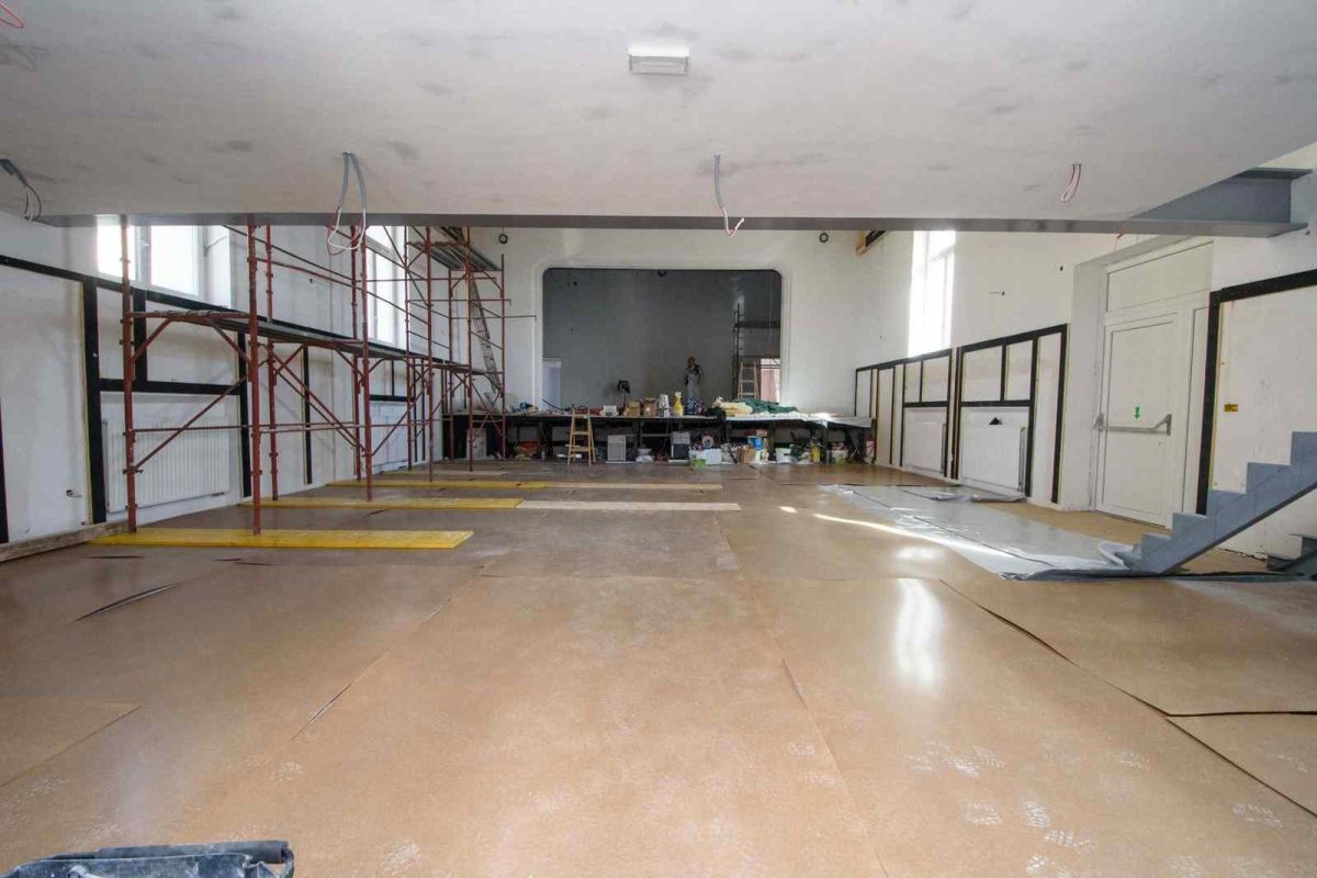 Vhodni del parterja pod balkonom je pregrajen z novimi stenami, ob preddverju so nove sanitarije za obiskovalce, obnovili bodo še obstoječ lesen oder za nastopajoče z lesenim podom, zamenjali čelno oblogo odra in lesene stopnice za na oder. V izdelavi je obešen strop iz lesenih akustičnih plošč z vgradnimi lučmi, akustične obloge pa so predvidene tudi na stenah med radiatorji do okenskih parapetov, ki bodo lahko služile priložnostnim razstavam slik. Na oknih dvorane bodo nameščeni notranji zatemnitveni »screen« roloji, oder pa bodo krasile tudi nove odrske zavese.