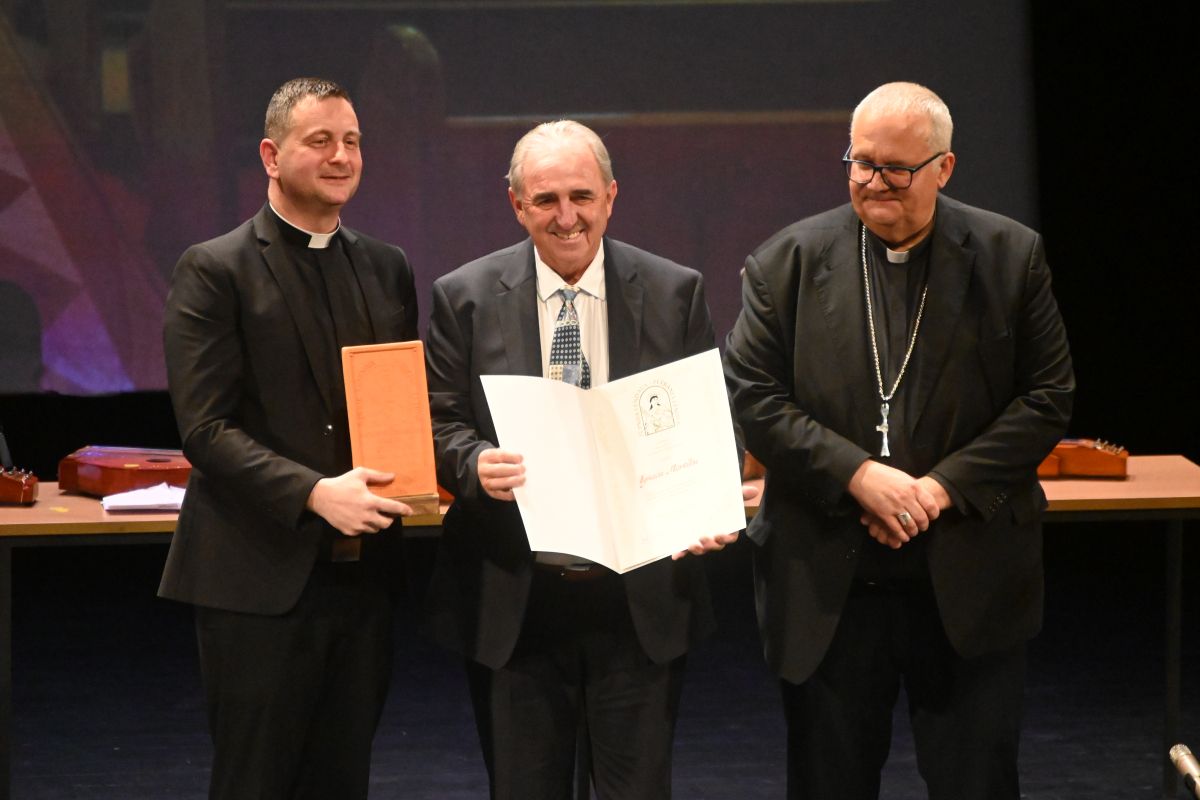 V lendavskem kulturnem domu je minulo soboto potekala svečana prireditev ob zaključku prenove župnijske cerkve, posvečene sveti Katarini Aleksandrijski, ki stoji v središču Lendave. V okviru prenove, ki je trajala šest let, je bila cerkev, ki je bila v sedanji obliki zgrajena leta 1751, deležna najobsežnejše prenove v njeni zgodovini. Za projekt sta prispevali tako slovenska kot madžarska vlada. Domača je obnova podprla s 167 tisoč evri, madžarska pa je projektu namenila kar 360 tisoč evrov. Pomemben delež so darovali tudi verniki in različni donatorji. V bogatem, več kot dve uri trajajočem, programu so na prireditvi skozi dokumentarne filme in predavanje zgodovinarja Lazsla Gönca predstavili 700-letno zgodovino župnije ter skoraj 300-letno zgodovino cerkve, podeljene pa so bile tudi zlate plakete svete Katarine Aleksandrijske in pohvale najzaslužnejšim, od institucij, obrtnikov in podjetnikov ter posameznikov, za obnovo cerkve. Ob koncu sta murskosoboški škof Peter Štumpf in lendavski župnik Martin Dolamič Konrad podpisala kaligrafsko listino v treh jezikih, slovenskem, madžarskem in latinskem, o posvetitvi cerkve, ki bo vgrajena v oltarni prostor. Na ogled so bile tudi dragocenosti župnije, in sicer Banffyjev in Hadikov kelih ter najstarejša matična knjiga. Posvetitev cerkve s sveto mašo, med katero bo škof Štumpf opravil blagoslov oltarjev in prižnice ter mazilil obnovljeno svetišče cerkve, je na sporedu danes. Fotografije svečane prireditve, kjer ni manjkalo znanih obrazov, razen napovedane ministrice za kulturo Aste Vrečko in predstavnikov lendavske občine, je zbral Rok Šavel.