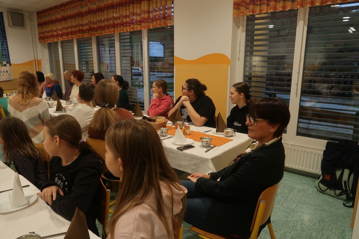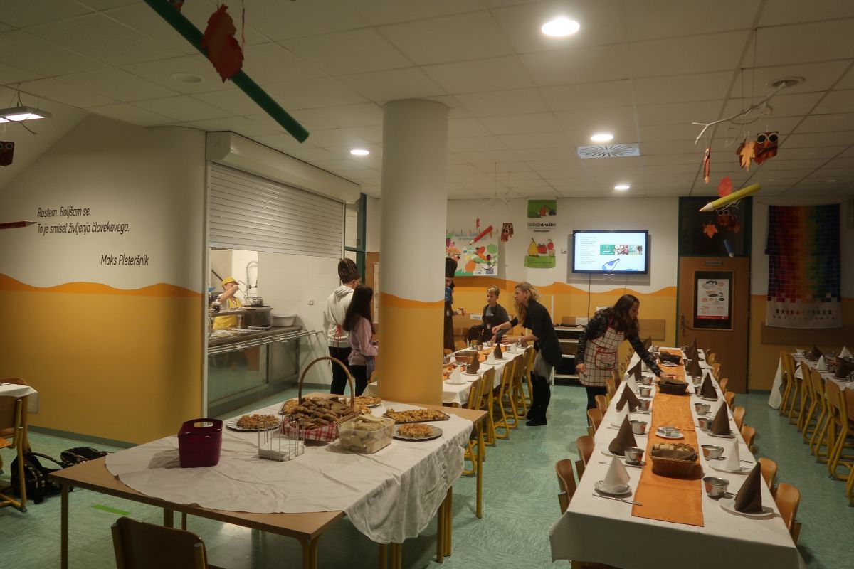 V petek, 18. novembra, smo imeli na OŠ Maksa Pleteršnika Pišece prav prijeten zajtrk. Zakaj? Vsi smo se ob 7.30 zbrali v jedilnici, učenci in učitelji, kjer so nas čakale pogrnjene mize, pribor, mleko, maslo, med, nato pa so nas naši SPH-učenci (tisti, ki obiskujejo izbirni predmet sodobna priprava hrane pri učiteljici Urški Tomše), preoblečeni v čisto prave natakarje in natakarice, postregli z jedmi, ki sodijo na mizo ob tem prazniku. Bilo nam je prav prijetno in lepo.