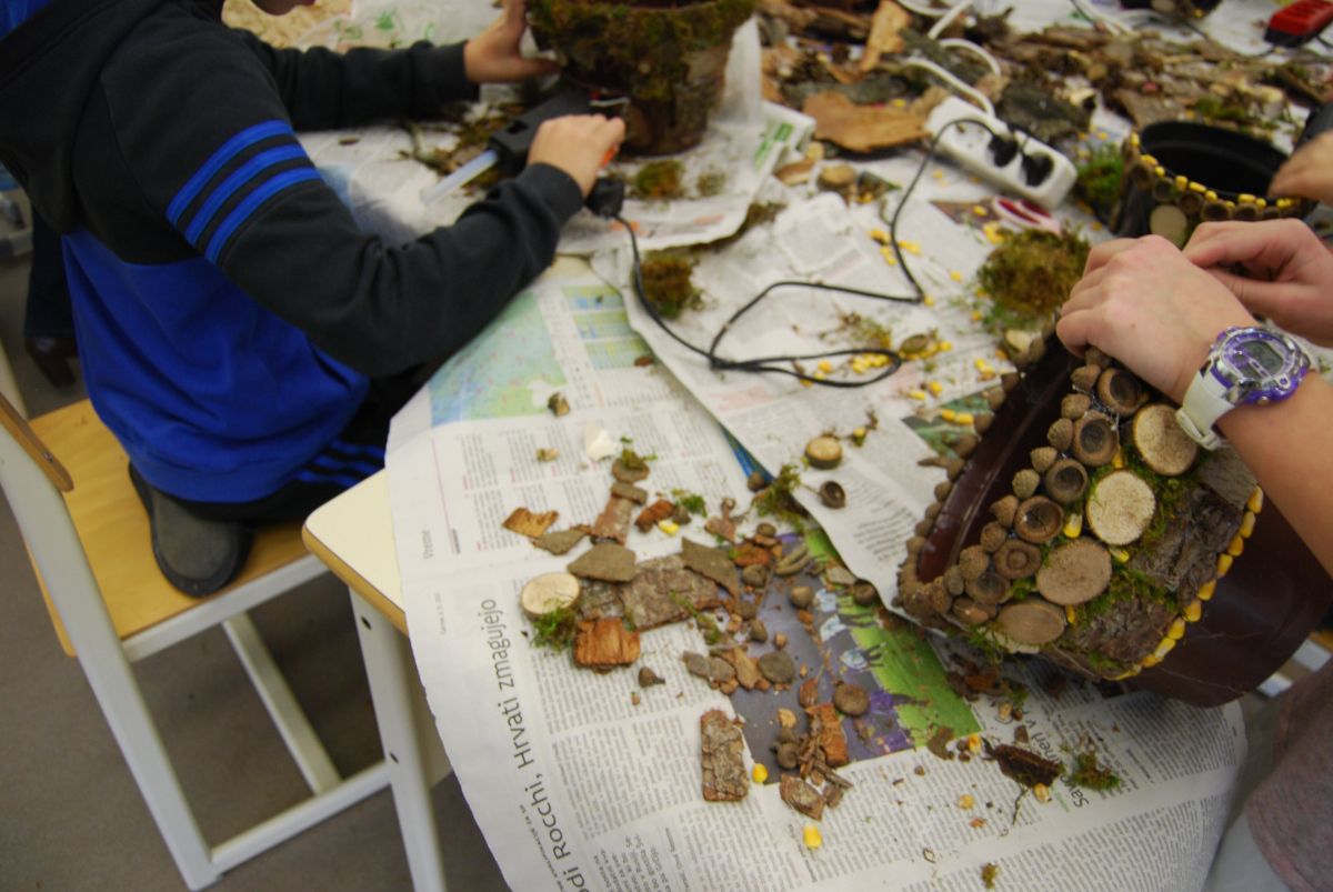 Skupina učencev je z naravnimi materiali okraševala cvetlične lončke, v šolski knjižnici pa so ustvarjali voščilnice ter verižice iz papirja. V učilnici za tehniko in tehnologijo so izdelovali angelčke iz lesa ter božične smreke iz lesenih palčk in volne. V fotografski delavnici so učenci razvijali fotografije domačega kraja.