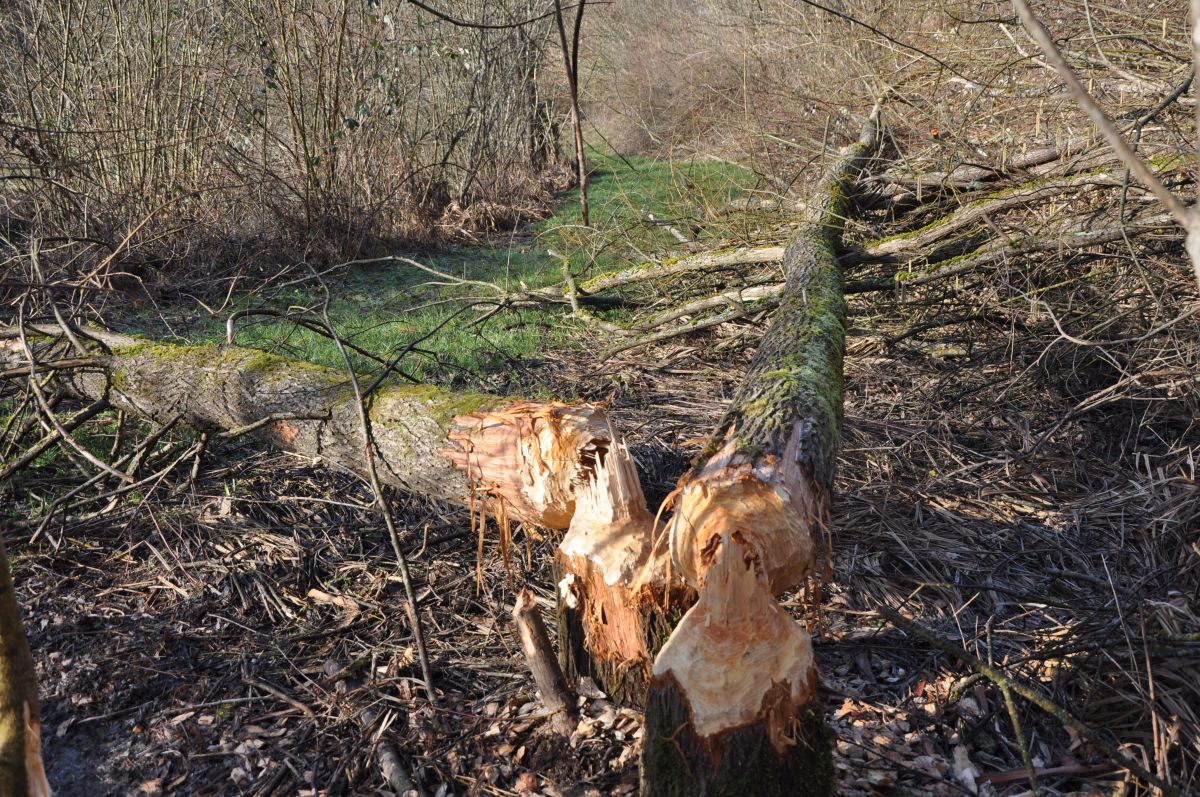 Bobri so bili v zadnjih mesecih zelo delovni in vztrajni: podrli so deset debelejših dreves in dober ducat drobnejših. Le malo dreves je padlo v potok, druga številnejša križemkražem ležijo po travniku.