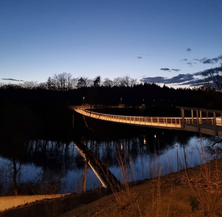 Naša kužika me je ondan peljala na sprehod, sva zajadrali vse tja do Irče vasi in nove brvi. Lepa, ni kaj. Gor še ne moreš, ker je zaključna plast betona očitno še premehka. Je še 'frišno' ... :)