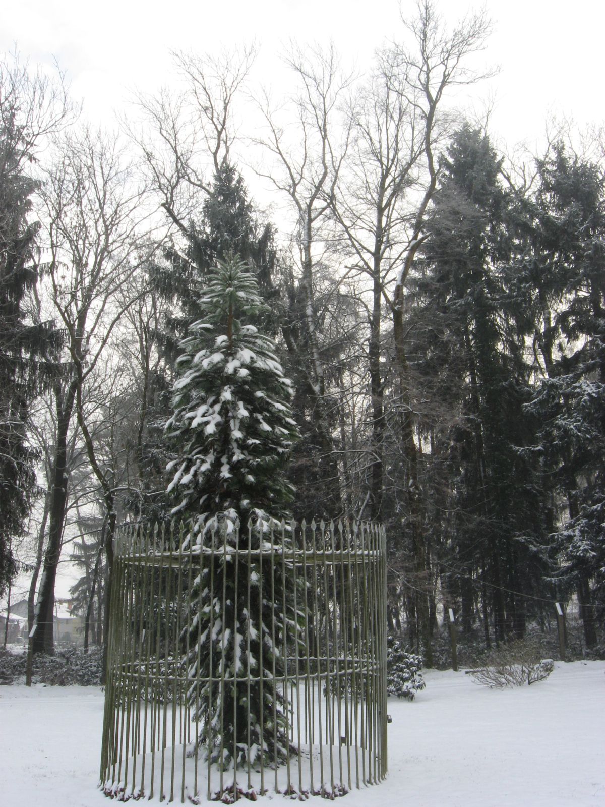 Prva volemija, ki smo jo vzgajali v Botaničnem vrtu Univerze v Mariboru, je skoraj do konca življenja na svoji prvotni lokaciji živela v kletki. To so zahtevali gojitelji, saj so bile rastline zaščitene in jih je bilo prepovedano razmnoževati. Kletka se je uporabljala zato, da kakšni zeleni prsti ne bi posegli po potaknjencih. Tudi sadike so bile takrat drage, stale so pravo premoženje. Naročiti so jih smeli le botanični vrtovi.