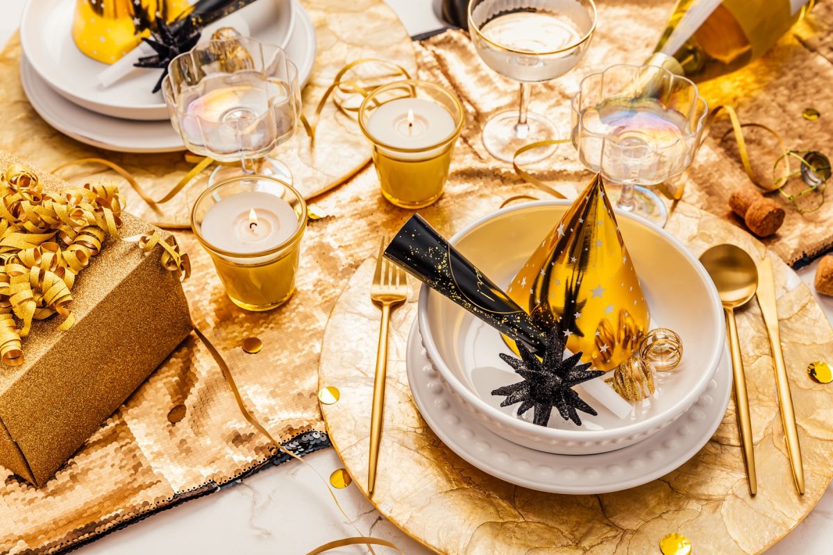 Srebro prevladuje kot glavni kovinski poudarek – od okraskov do oblog na mizah. Poiščite navdih s srebrnimi baloni in kovinskimi trakovi, ki dajejo prostoru eleganten, skoraj futurističen občutek glamurja. Taki elementi odbijajo luč in ustvarjajo bleščečo praznično atmosfero, ki je hkrati prefinjena in praznično navdihujoča.