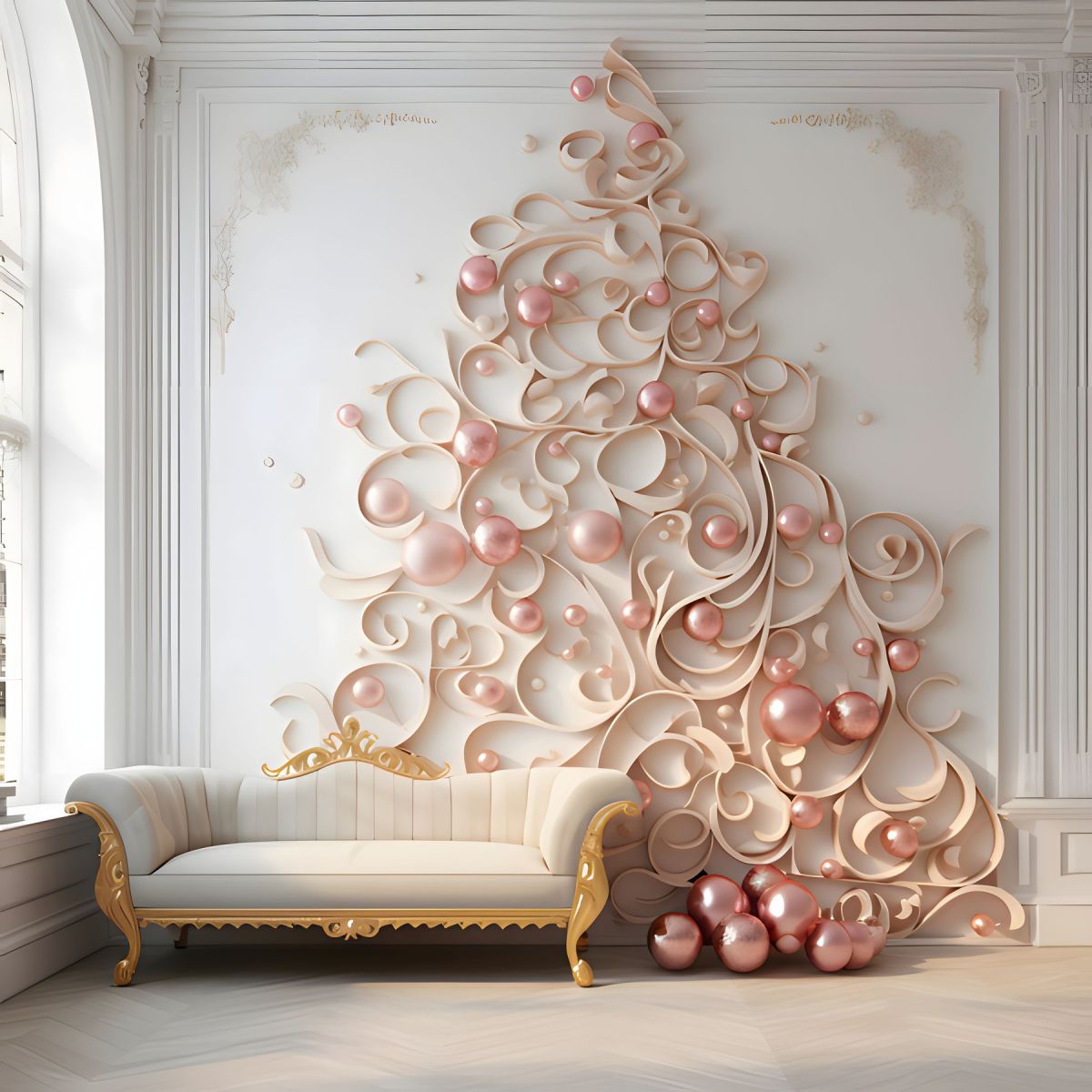 Za bolj sodoben videz lahko naredite stensko dekoracijo v obliki silhuete drevesa — iz lesa, kablov z lučkami ali papirja. To prihrani prostor in je idealno za manjša stanovanja.